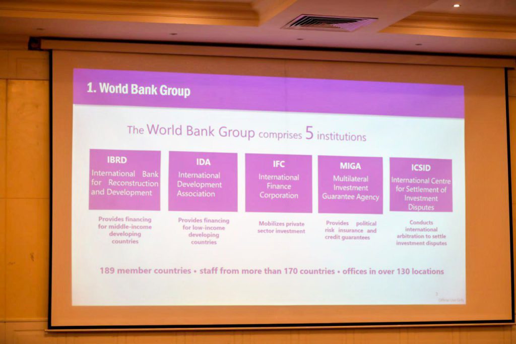 በዓለም ባንክ የግዢ ባለሙያ አቶ አማረ አሰፋ ባቀረቡት ሰነድ ባንኩ በኢነርጂ፤ በትምህርት፤ በፆታ፤ በአየር ንብረት ዘርፎች እና መሰል ጉዳዮች ላይ ለተበዳሪዎች የራሱን ፕሮግራም ቀርፆ እንደሚሰራ ገልፀው በኃይል ልማት ዘርፍ ላይ የሚሳተፉ የስራ ተቋራጮች ስለባንኩ ማወቅ ያለባቸዉን የአሰራር ስርዓቶች በዝርዝር አስረድተዋል፡፡