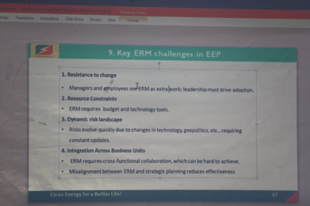 በኢትዮጵያ ኤሌክትሪክ ኃይል ሊያጋጥሙ የሚችሉ ሥጋቶችን ቀድሞ በመለየት ፈጣን ምላሽ መስጠት እንደሚያስፈልግ በተቋሙ የኢትዮ ፓወር አካዳሚ የአመራር ልማት ሥራ አስኪያጅ ወ/ሮ ተናኘ መኮንን አስታወቁ፡፡