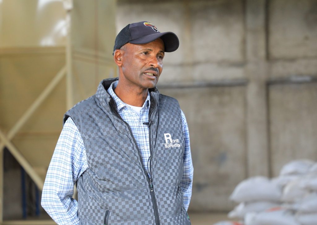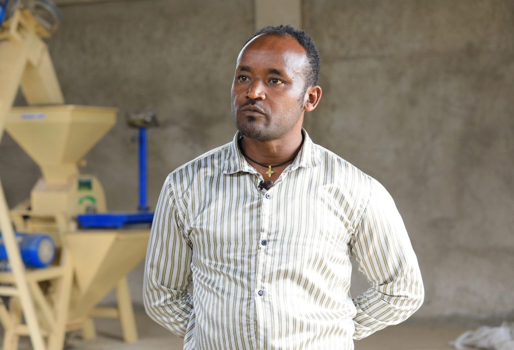 According to Afework Hailemariam, Secretary of the Waja Qero Sopila Development Cooperative Livestock Farming and Feed Processing Association, which includes 80 development-affected farmers and their families, the factory has the capacity to produce 12 quintals of cattle feed and 18 quintals of poultry feed per hour.